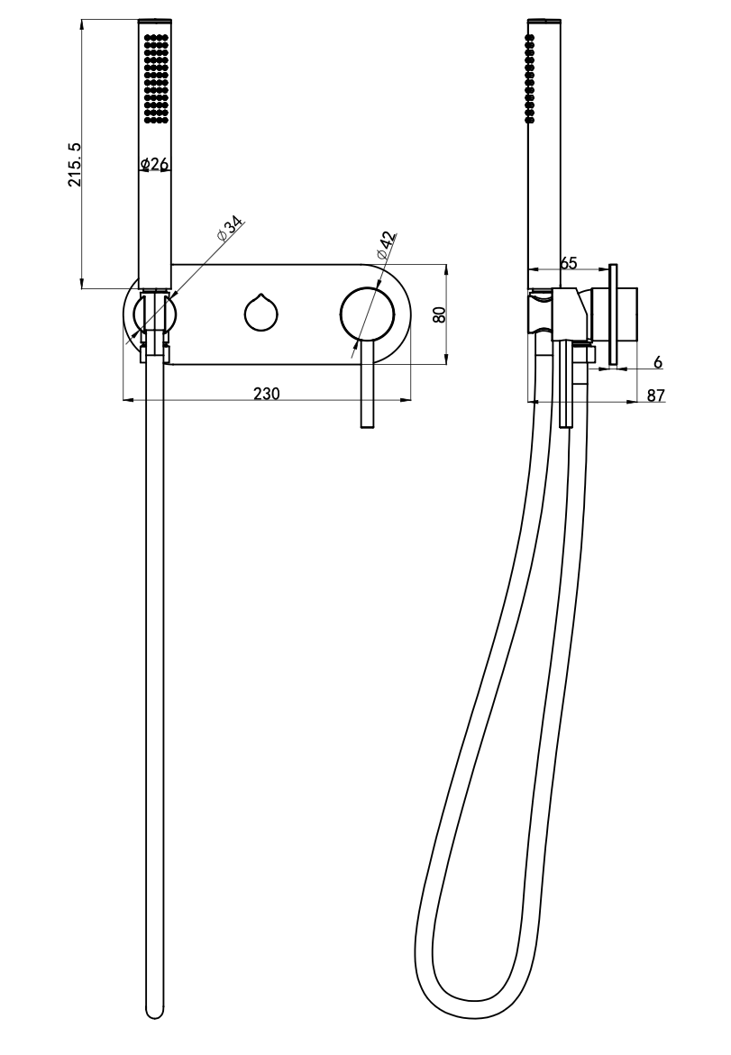 Gigi S3 1-Plate Wall Mixer with Hand Shower Trim Kit