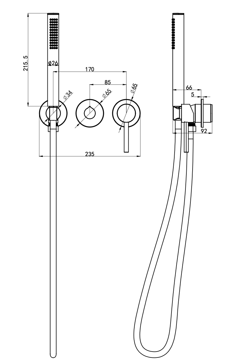 Gigi S3 3-Plate Wall Mixer with Hand Shower Trim Kit